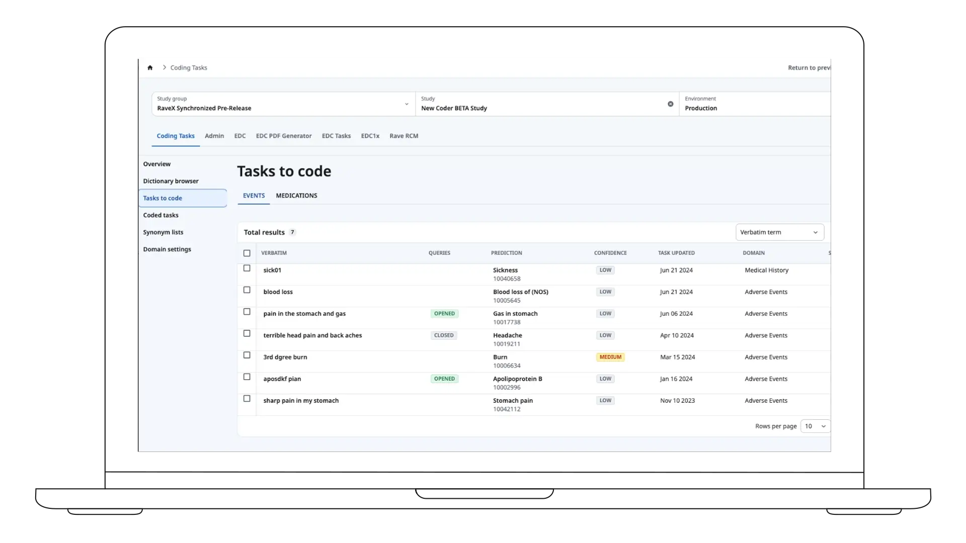 Medidata Coder+ 实现了 在Rave EDC 内的 AI 编码,利用 超过9,000 万条历史编码经验训练的模型,能够生成高置信度的编码预测,从而大幅提升跨研究的编码速度与一致性。