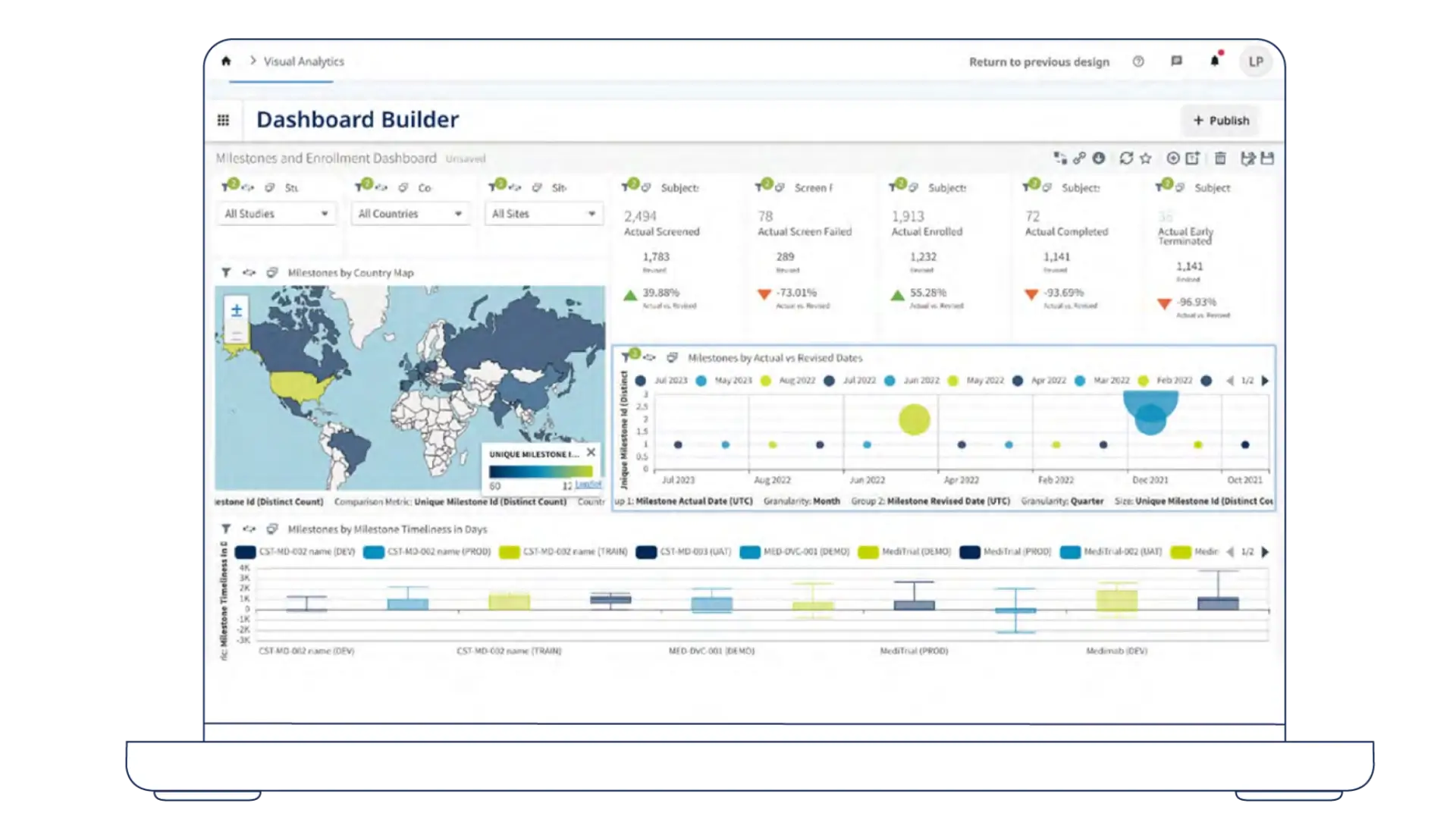 Medidata 临床试验管理系统 (CTMS) 将临床和运营活动整合到一个互联视图中,与团队所依赖的系统协同工作,以计划、跟踪和监查研究。