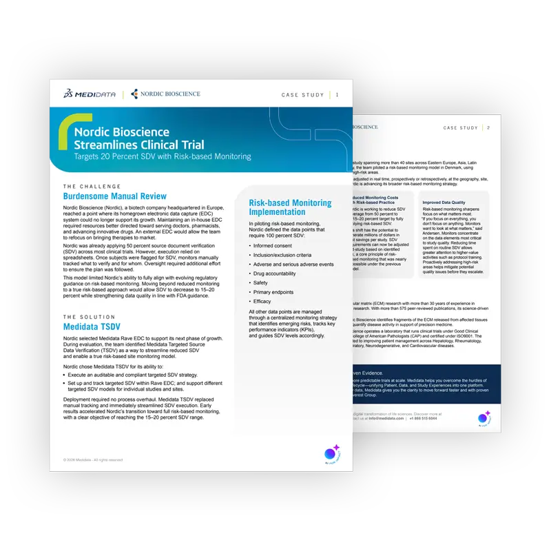 TSDV는 SDV를 체계적인 위험 기반 전략으로 전환합니다. 연구 수준의 위험 평가에 맞춰 검증이 필요한 항목, 수준, 위치를 정의할 수 있습니다.